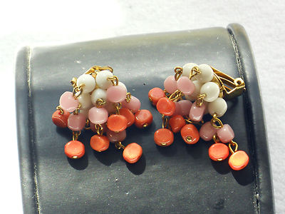 Title (ebay affiliate link): VINTAGE WHITE - PINK & CORAL MILK GLASS DANGLE EARRINGS - RARE & STUNNING!!
