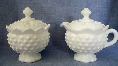 Title (ebay affiliate link): FENTON HOBNAIL MILK GLASS COVERED CREAMER AND SUGAR BOWL 4 PC SET