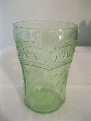 VINTAGE GREEN DEPRESSION GLASS TUMBLER / GLASS