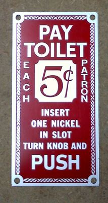 VINTAGE 5 CENT PAY TOILET SIGN - 1970`S