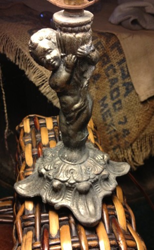 Antique Brass Cherub Lamp Nice Petina Cherub And Base 6.5" Very Nice Brass