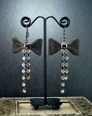 Title (ebay affiliate link): CC209A Antique Vintage Alloy Ribbon Dangle Earrings