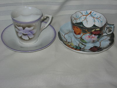 Title (ebay affiliate link): Lot 2 Vintage Mustache Cups & Saucers Mugs Floral Autumn Leaves Unmarked