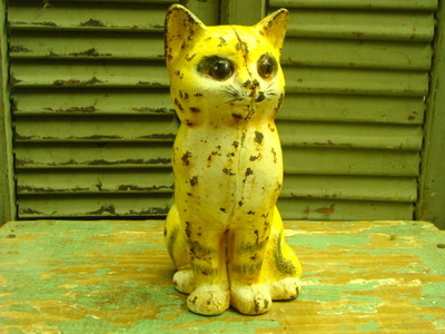 Estate Vintage Iron Cat Bank or Doorstop - Glass Eyes!