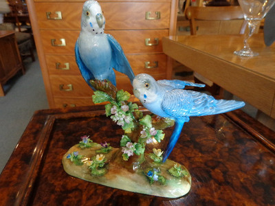 Title (ebay affiliate link): Crown Staffordshire Parakeet Pair Perched Around Decorative Flowers Signed