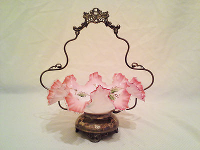 Title (ebay affiliate link): Cased Glass Cranberry Rim Silverplate Brides Bowl / Basket Hand Painted NICE!!