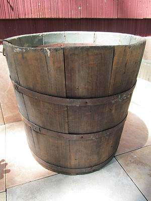 Title (ebay affiliate link): PRIMITIVE OLD NEW ENGLAND WOODEN & METAL STRAPPED BUCKET MAPLE OLD FARM TOOL