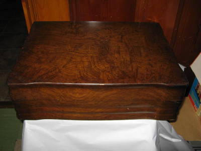 Title (ebay affiliate link): VINTAGE LARGE WOODEN FLATWARE CHEST / BOX STORAGE BLUE VELVET INTERIOR