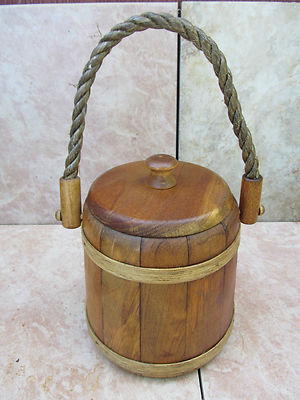 Title (ebay affiliate link): ANTIQUE VINTAGE WOOD SUGAR BUCKET W/ LID & ROPE HANDLE OLD FARMHOUSE KITCHENWARE