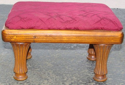 NICE ANTIQUE BURGUNDY UPHOLSTERED FOOT STOOL