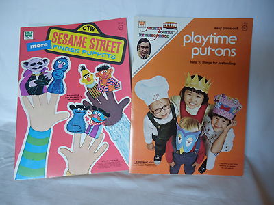 Title (ebay affiliate link): Vintage Press Out Books Sesame Street Finger Puppets Mister Rogers Put-ons Uncut