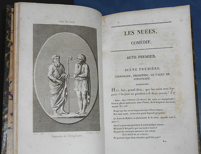Title (ebay affiliate link): 1823 ANTIQUE BOOK, ENGRAVING SOCRATES, ARISTOPHANES COMEDIES GREEK THEATER DRAMA