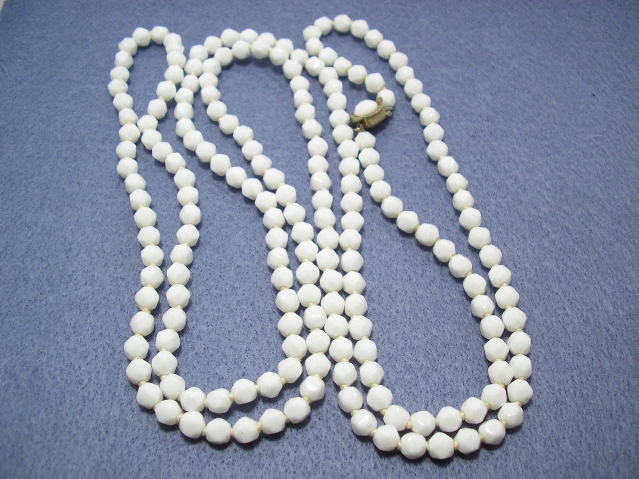 LONG, FLAPPER LENGTH WHITE MILK GLASS BEADED NECKLACE!