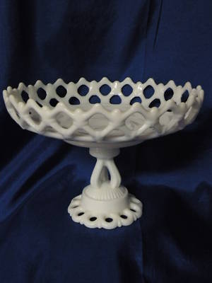 Westmoreland Milk Glass Fruit Compote Bowl Lattice