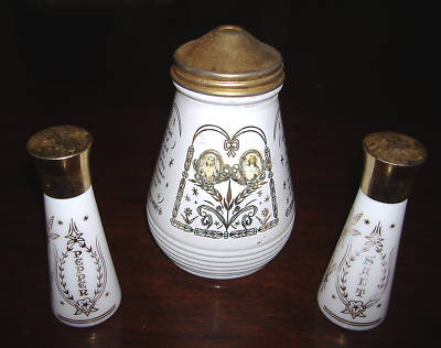 VINTAGE JESUS & MARY MILK GLASS SALT / PEPPER / SUGAR