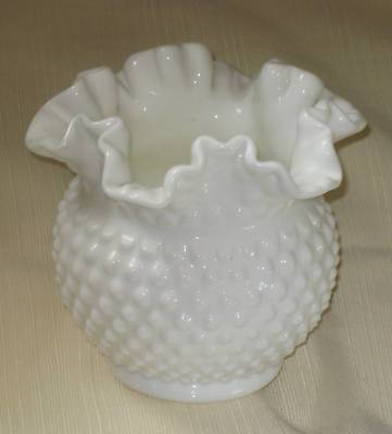 Vt. Fenton Hobnail Milk Glass Crimped Ruffled top Vase
