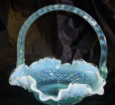 Fenton Lt Blue and Milk Glass With Hobnail Basket