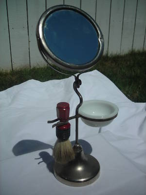 Vintage German Shaving Stand with Milk Glass Bowl
