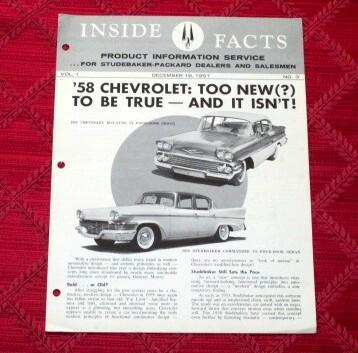 VERY GOOD, ORIG 1958 STUDEBAKER COMPARISON BROCHURE WITH CHEVROLET