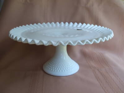FENTON PIE CRUST MILK GLASS PEDESTAL CAKE PLATE-MINT
