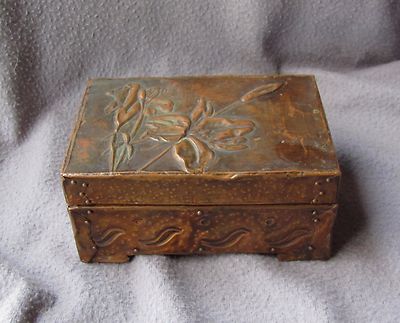 1948 Signed Handcrafted Copper on Wood Box w/ Lid Embossed Flowers