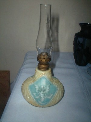 Early Blue&Cream Eagle Decorated Minature Oil Kerosene Lamp