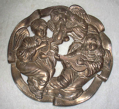 Title (ebay affiliate link): VINTAGE GODINGER 'ANGEL' TRIVET. SILVER PLATE (3 ANGELS W/INSTRUMENTS) - 9" Dia.