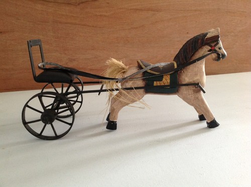 Amish Carved Wooden Horse And Cart Great Piece Of Art