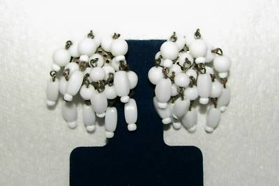 VINTAGE MILK GLASS WATERFALL EARRINGS SIGNED GERMANY