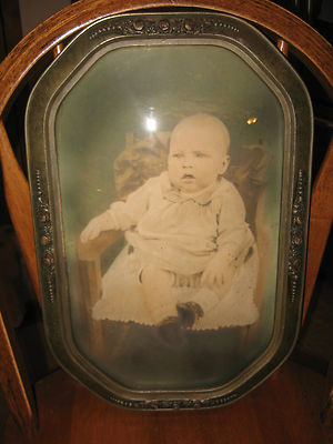 Title (ebay affiliate link): ANTIQUE WOOD & GESSO FRAME WITH BABY PHOTO - BUBBLE GLASS/CONCAVE GLASS