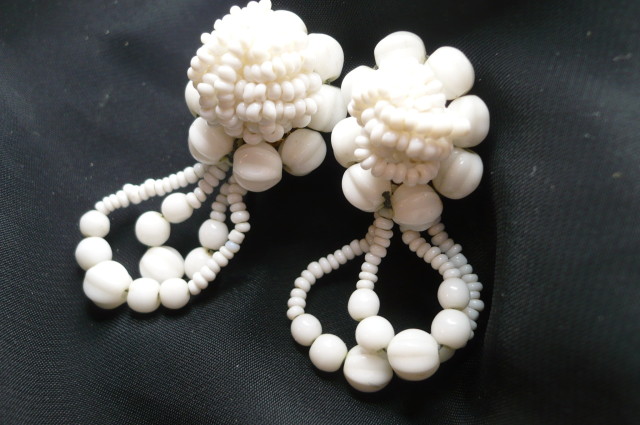 1930's MILK GLASS FLOWERS EARRINGS GERMANY HANDMADE