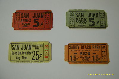 Vintage, Amusement Park Tickets, Logan County, Indian Lake, Russells Point, Ohio