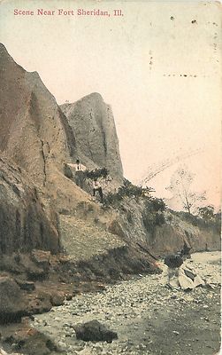 Title (ebay affiliate link): Sheridan Illinois~Men On Bluff Rocks~Couple At Bottom~1912 Postcard