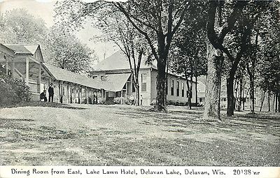 Title (ebay affiliate link): Delavan Wisconsin~Lake Lawn Hotel~Dining Room~Men Under Breezeway~1920 CR Childs