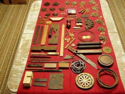 LOT OF OLD CLOCK PARTS CUCKOO CHAINS SPRING RETAINERS BRASS BEZEL ANTIQUE WOOD