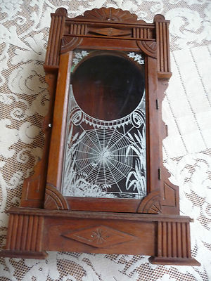 Antique Gilbert Clock Co. Shelf Clock Case with spiderweb and spider design