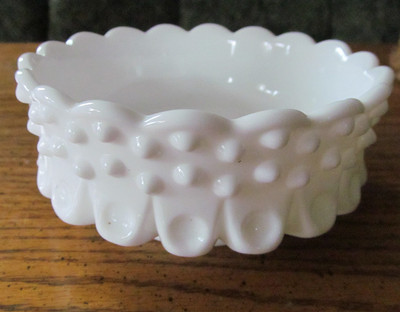 Title (ebay affiliate link): Vintage Unmarked Fenton Bon Bon Bowl Hobnail Milk Glass Very Nice.