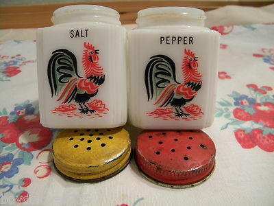 Title (ebay affiliate link): Vintage Rooster milk glass Salt and Pepper Shakers made in USA