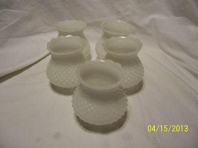 5 Vintage Hobnail Ruffle Rim White Milk Glass Lamp Globes