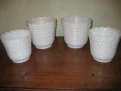 Hobnail White Milk Glass Planters Flower Pots lot 0f 4