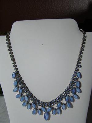 Title (ebay affiliate link): Vintage Blue Milk Glass / Blue Rhinestone Fancy Bib Necklace F3