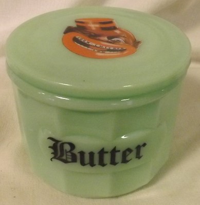 Black Americana Jade Jadite Milk Green Glass Butter Crock