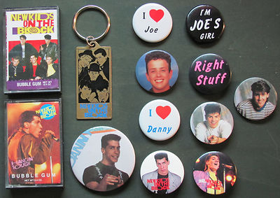 Title (ebay affiliate link): New Kids on the Block Pin & Keychain LOT ~ Vintage NKOTB Pins & Cassette Trivia