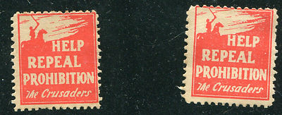 Help Repeal Prohibition, The Crusaders, 2 Stamps circa 1920s