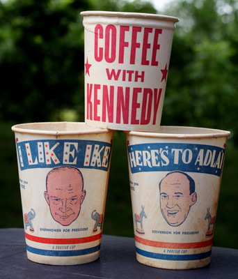 Title (ebay affiliate link): Vintage Mid-Century Political Campaign Advertising Paper Cups-Kennedy,Ike,Adlai