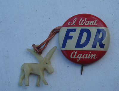 Title (ebay affiliate link): FDR ROOSEVELT pin button I WANT FDR AGAIN GreenDuck Union Donkey Hanger