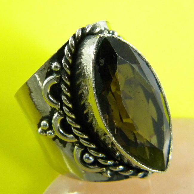 Title (ebay affiliate link): ANTIQUE LOOK Smoky Topaz Checker Sterling Silver Ring 9