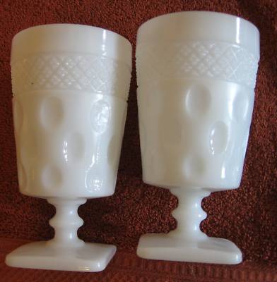 Pair 2 White Milk Glass Goblets thumbprint tall glasses