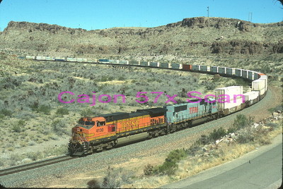 Original slide- BNSF C44-9W #4130, TFM & Train At Kingman,AZ.