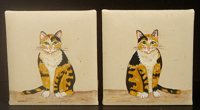 Pair Hand Painted Cats on Canvas Wrapped Bookends